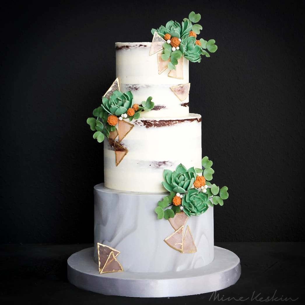Butik ve görsel tasarıma dayalı çalışıyoruz, bu nedenle pastaların belirli bir boyutta olması gerekiyor. Minimum 20 kişilik tek katlı pastalar yapıyoruz. Bu boyut, hem görsel hem de tasarım açısından en ideal olanıdır.