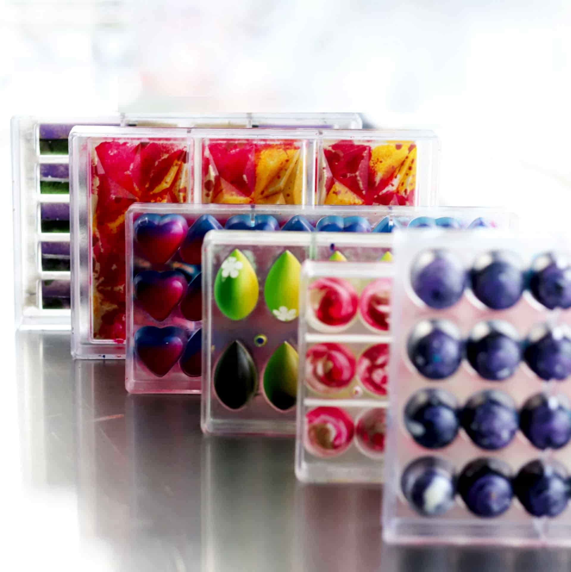 Parlak ve rengarenk kabuklarla enfes iç dolguları birleştirerek benzersiz çikolatalar tasarlıyoruz! Farklı teknikler kullanarak siz de bir çikolata şefi olabilirsiniz. Bu heyecan verici yolculuğa katılmak için şimdi harekete geçin!